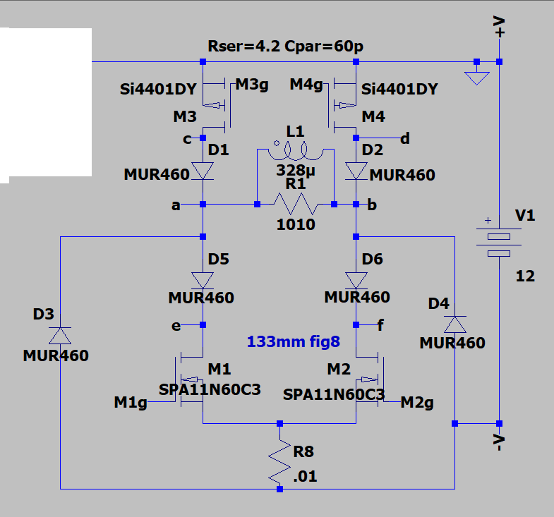 Do the same thing, add series diodes.Originally posted by green View Posthttps://www.geotech1.com/forums/atta...8&d=1610389484 D1 isolates the coil from the M1 during discharge with the unipolar circuit. Any ideas isolating the coil from M1 and M2 during discharge with the bipolar circuit? Real circuit effected more than spice circuit.