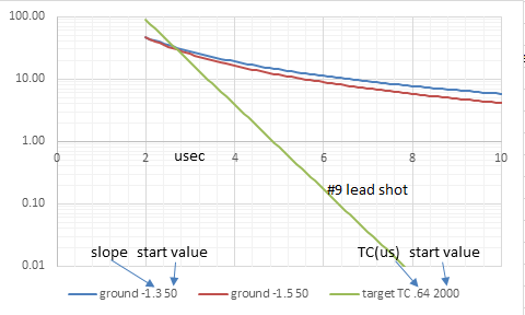Charted signal vs distance for some targets. Think it's more repeatable. Noise level effects detection distance. The lead shot cover .5 to 1.5us TC targets(small nuggets). Nickel(10us TC) and Quarter(145us TC)targets to see what effect changing Tx and sample times parameters have on higher TC targets.