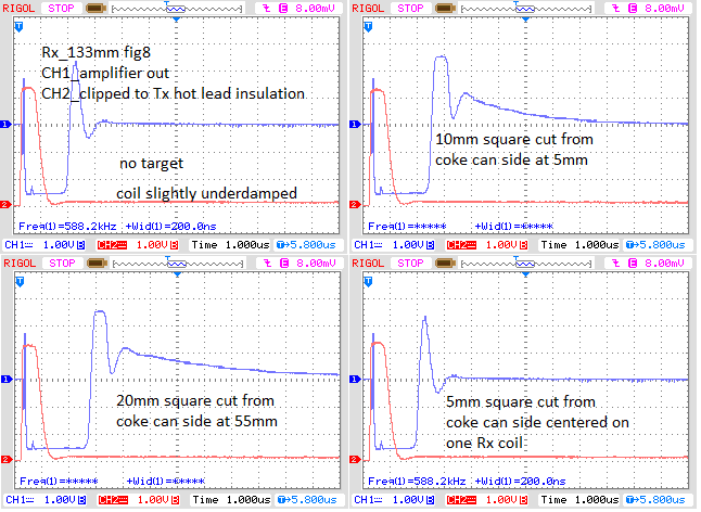 The targets I sent included craft sticks with 1 piece of shot and sticks with 4 pieces of shot. He didn't detect the #8 or #9 targets with 4 pieces either, which should have 4 times the signal strength with the same time constant.