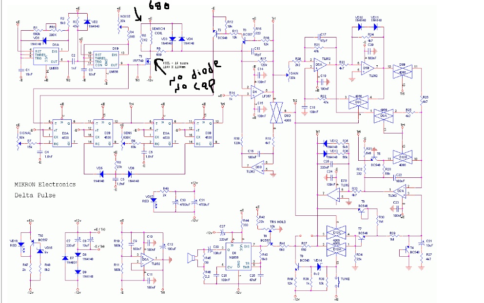 DP is working good without the HV diode and the capacitor. Check PULSE WIDTH, check all connections to the coil - from MOS-FET to connector, connector itself. if you use TURKISH PCB layout check ALL WIRES POIN-TO-POINT OUTER CONNECTIONS.Originally posted by amel View Posti need help in delta pulse