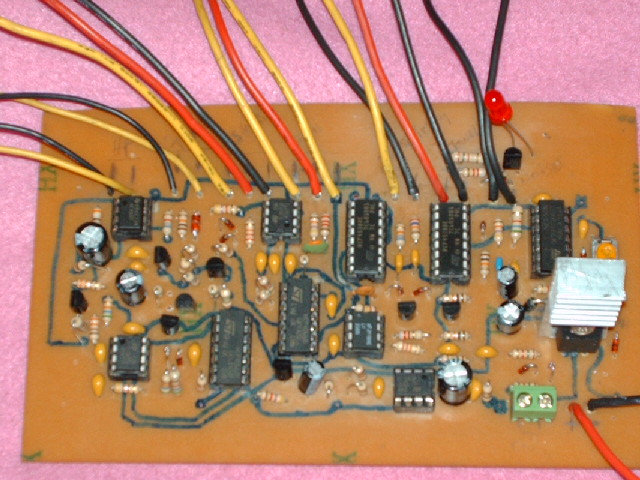 Look on the Mikron Delta Pulse Schematic at the +E and -E derived from the D7, D6 and D5 circuit across C7 and C8. Also look at the virtual ground that is at the output, pin-1 of D6A. Make sure that the proper +/-E voltages are on the voltage supply pins of all the ICs measured to TR8 or ground. If not, D8 or D9 may be bad. Make sure that everything with a ground symbol is connected to TR8.