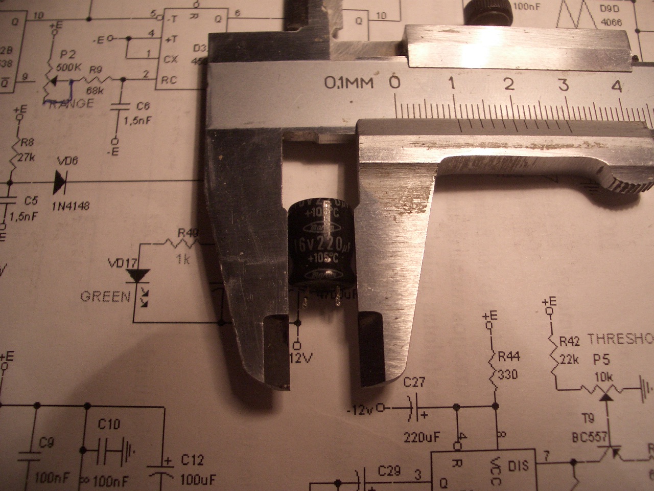 electrolitics have standart formfactor. not miniature. here at pic is 220uF 16V electrolitic.