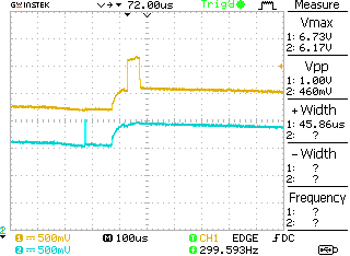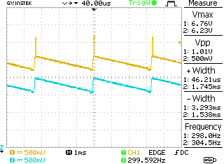 okyellow is D9-11 and blue is D7-2Originally posted by Jose View Postmohandes, send me a photo taken with the oscilloscope, the waveform at point "A" of the scheme, to compare with my DP. (ver.6 dp.JPG)