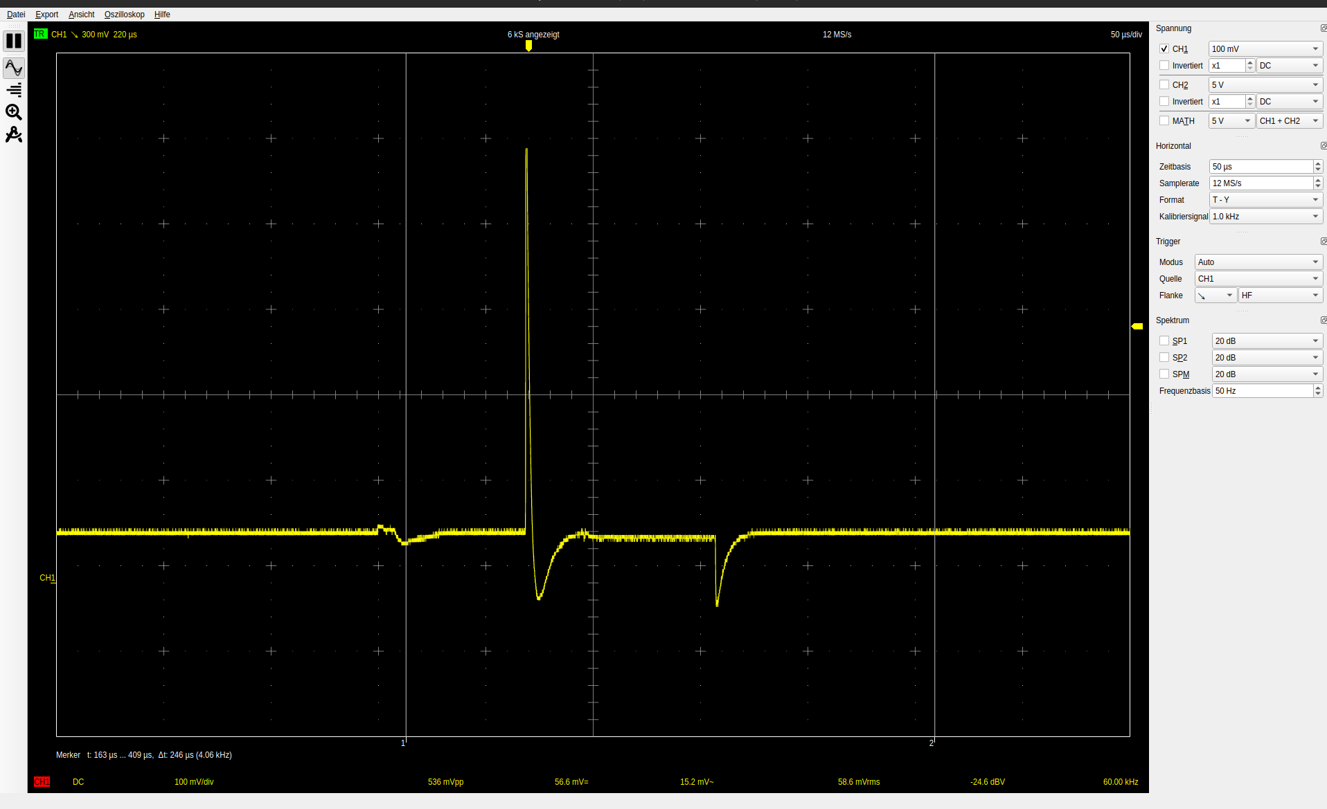 Now I have a new problem. The curve of the second preamp stage does look false. The following picturesy are oscillograms of my curves with different amplification of my scope. the yellow curve is from the first preamp stage and the blue from the second stage: