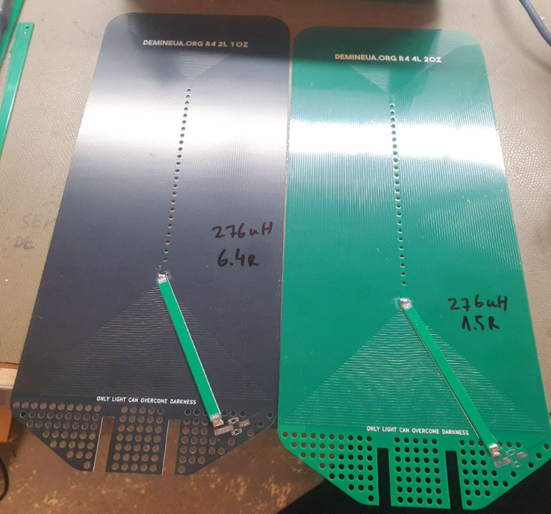 - PCB-based, small-size search coil: 4 layers, 2 Oz copper, 276 µH @ 1.7 Ω at the coil connector. Not shielded. Size rationale for cluttered soil use.