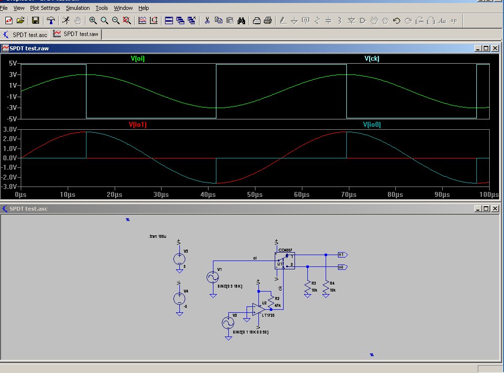 The CD4007 is wired as a SPDT analog switch. There are three other possible wiring combinations that I know of, to implement a SPDT switch. But I'm trying to keep this simple.