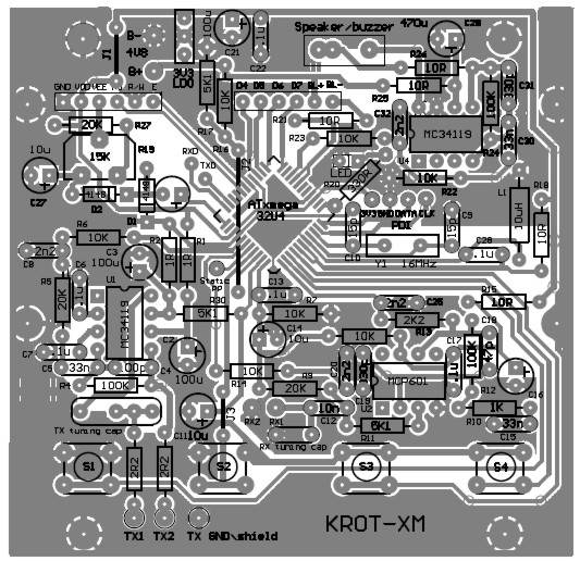 Hi Tepco.Originally posted by Tepco View PostI don’t have working unit yet (waiting for chip to arrive) but seems like this: Analog ground about RX input is carefully separated on PCB from rest of the circuit (digital ground), no idea how important this can be, but this is more correct way, I copied it. Switch position is nor important at this point, can be changed if needed. R27 in contrast adjustment most probably goes to 3.3V, this part for software contrast adjustment and negative voltage seems to be added later on schematic, anyway easy to reconnect, may vary with display type too. Volume pot is omitted, fixed resistor divider is used (volume adjustable in software). R26 is good to keep, to unload U4, depending on beeper or speaker type. Issue with C6,7 is OK, looking at datasheet 0.1uF should be enough for given frequency but there is enough room for modification on PCB to fit bit larger (also 200mil) 1uF. Link to Sprint6:
