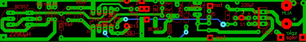 i ve made this pcb from malysh v2 sheme to fit in a 20mm diameter little water pipe. pcb is 130 mm X18mm