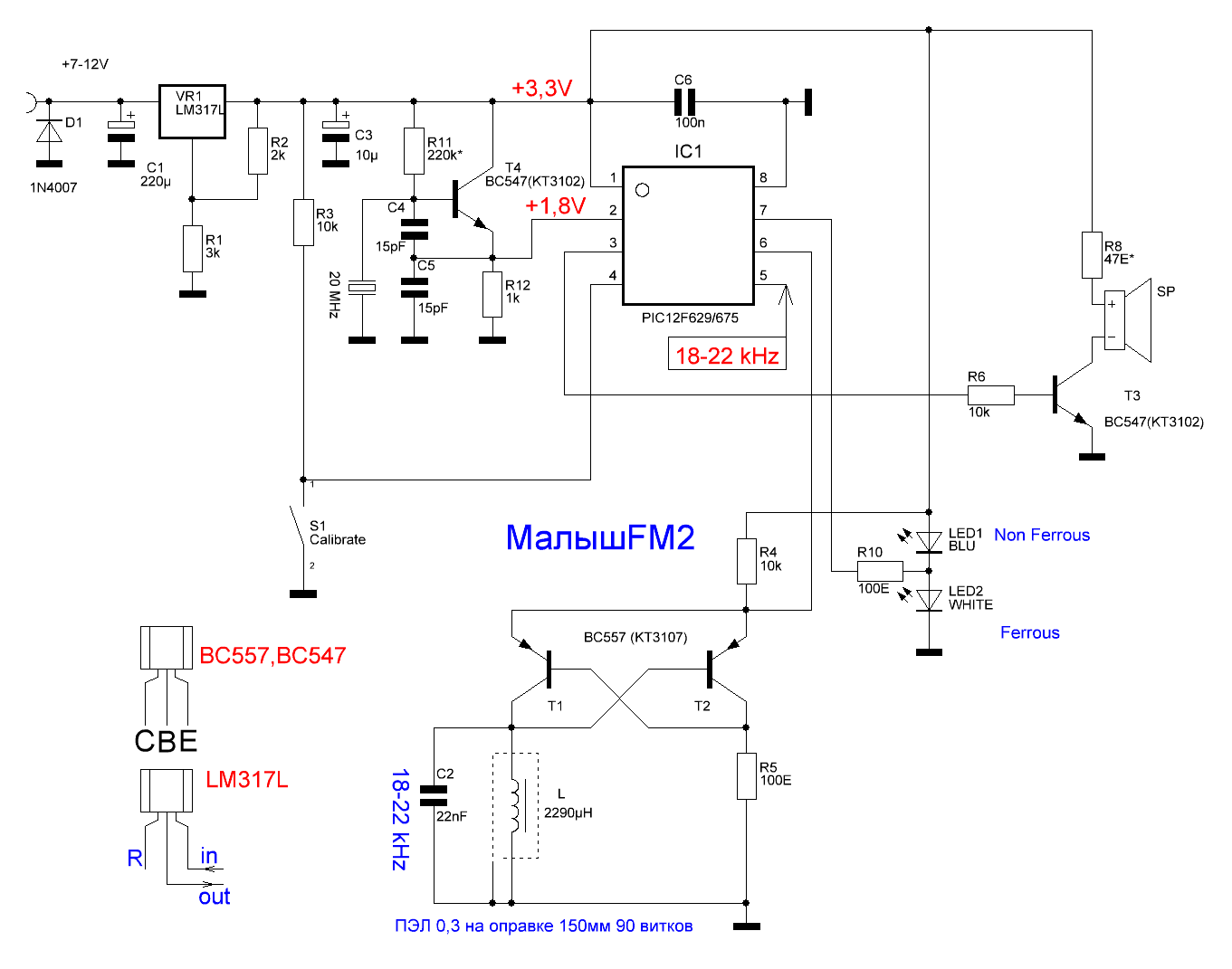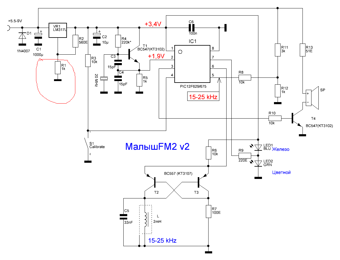 R1 has a value 3k in scheme Malish FM2 (it is not ver.2). Here, the power of the pattern is 3.3 volts. Software for the processor in these two versions is different