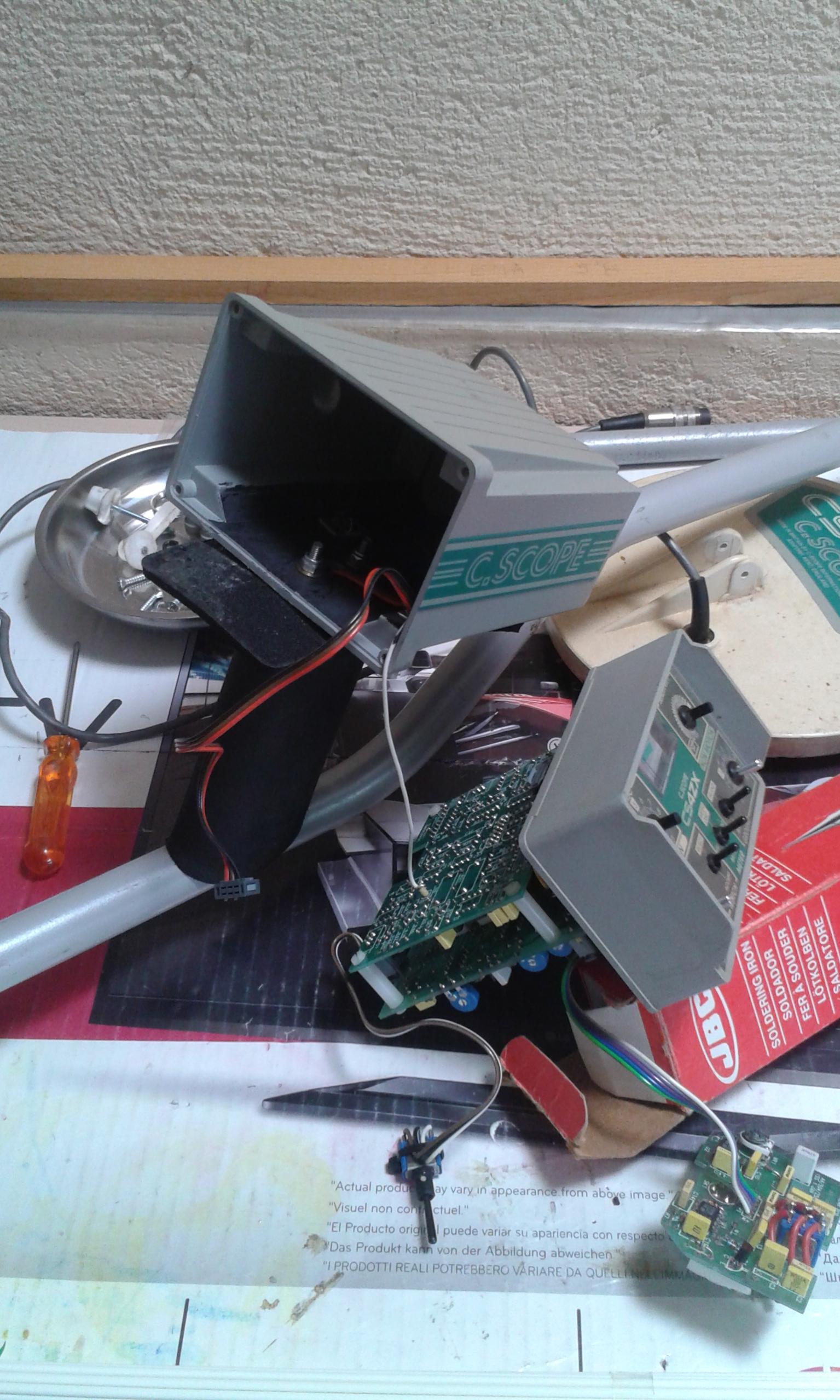 Well I am only dismounting the detector. When it will be in separate parts I´ll start to take photographs of PCBs with a camera. They are with serigraphy and components are available to read the values. I think It could be deduced the schematic. But as I have not too much time, I´ll print the PCB photographs and I take notes of the components values over them. Perhaps with more time I´ll paint the schematic starting from this information