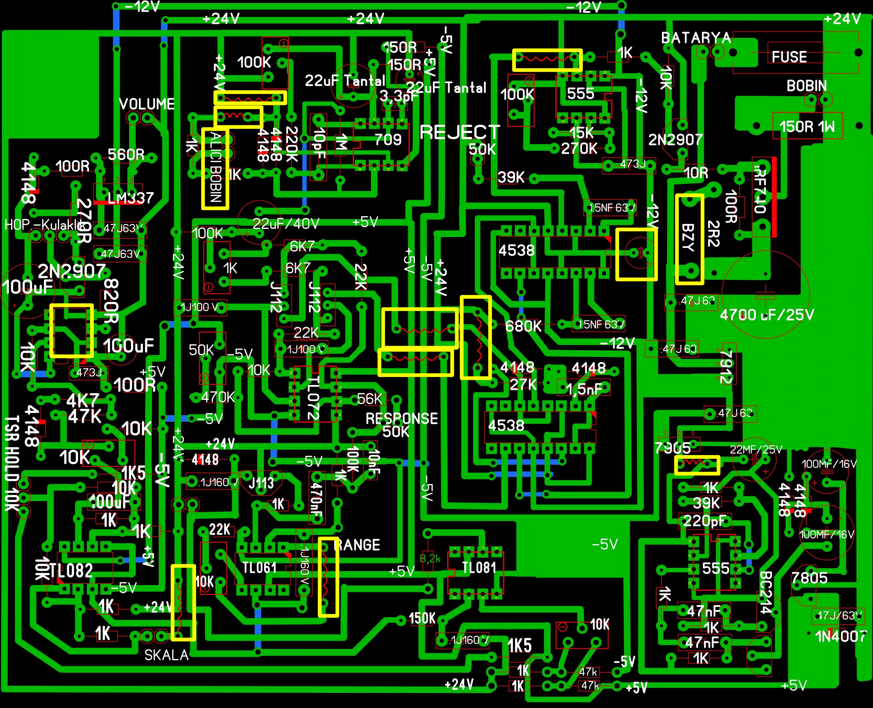 Hi, i got a problem when i try to make this powerful PI detector, but unfortunately, I have no information about where I place detection coil and where the other inductances must be soldered, can you help me to make a diagram of this detector ,I mean where detection coil, inductances and pots are placed, thanx.
