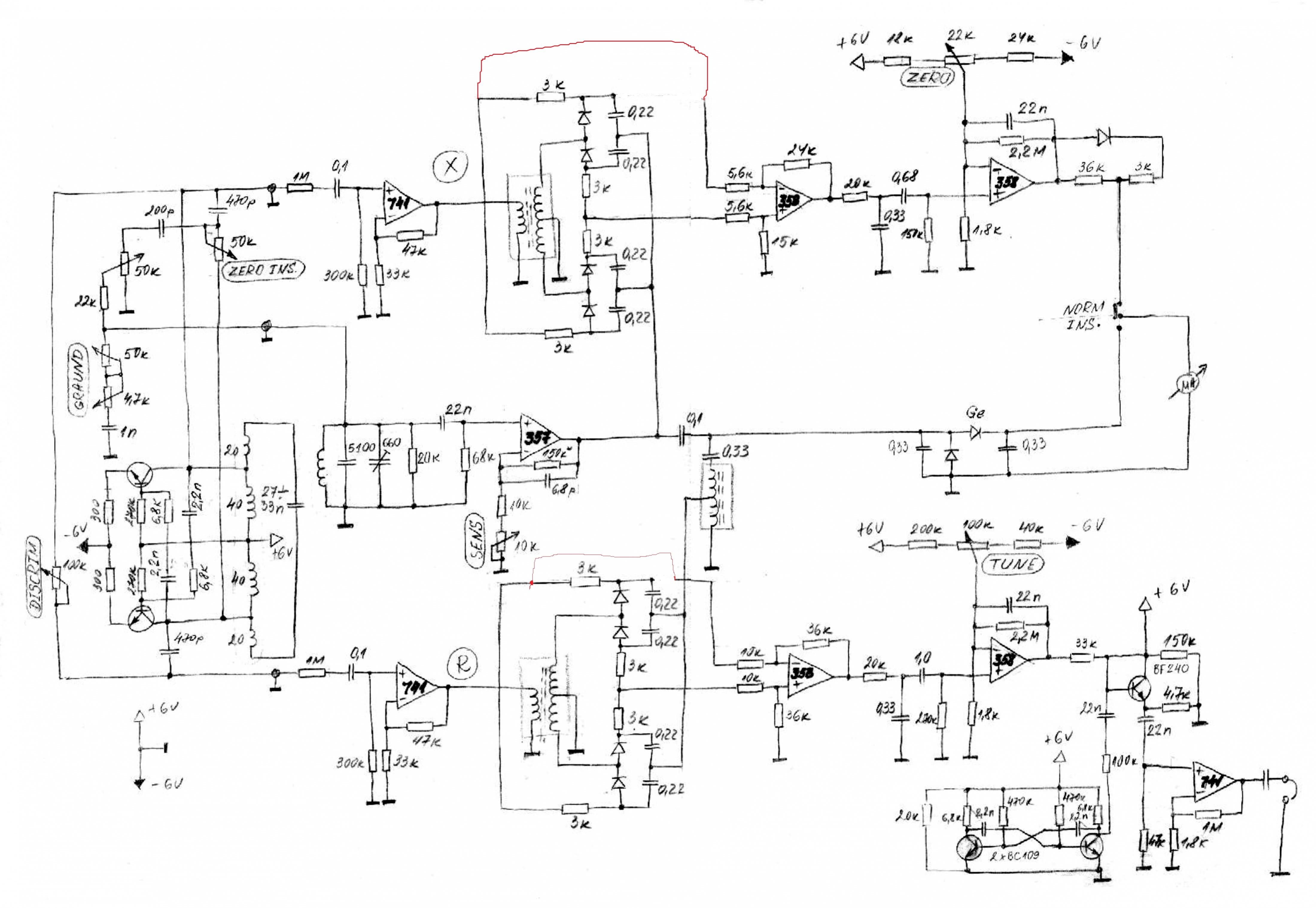 The schemes that I will publish soon have been downloaded from a real working machine and are absolutely accurate. Made by Mr. Grozdan. Later, they were modified due to technical problems with winding transformers and adjustment, as well as high demand. I will also say that the over-sensitivity of this circuit introduces additional difficulties when working near high voltages. But of course if you have sensitivity it will also have a large oscillation near magnetic fields. However, this circuit solution, combined with all the laws of nature, is an ingenious creation that remained misunderstood by the audience. I can say all the other metal detectors in comparison are toys for children. There can be no comparison. It will be funny. So the myths and legends are true!