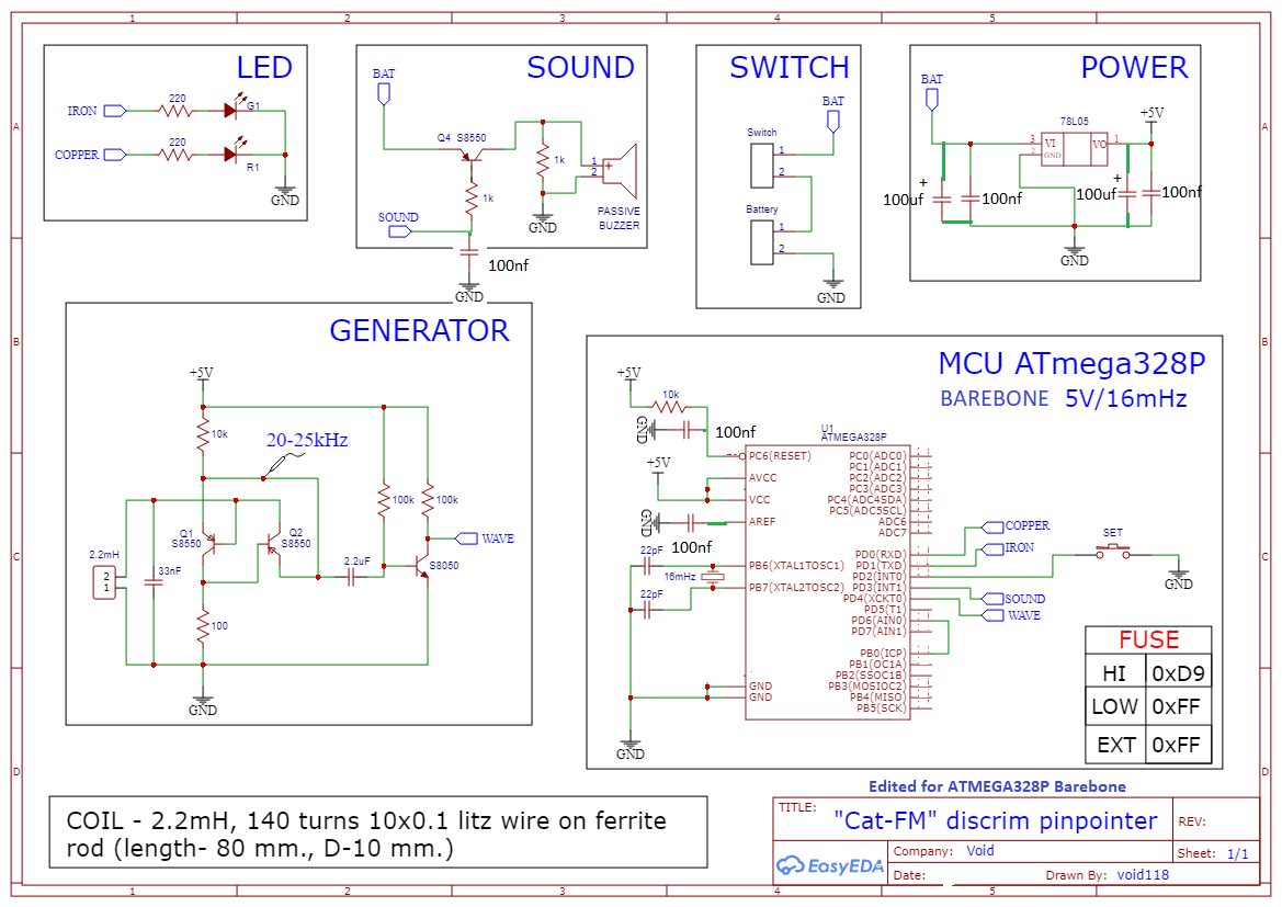 Pinpointer with discrimination "Cat-FM" on ATMega328P