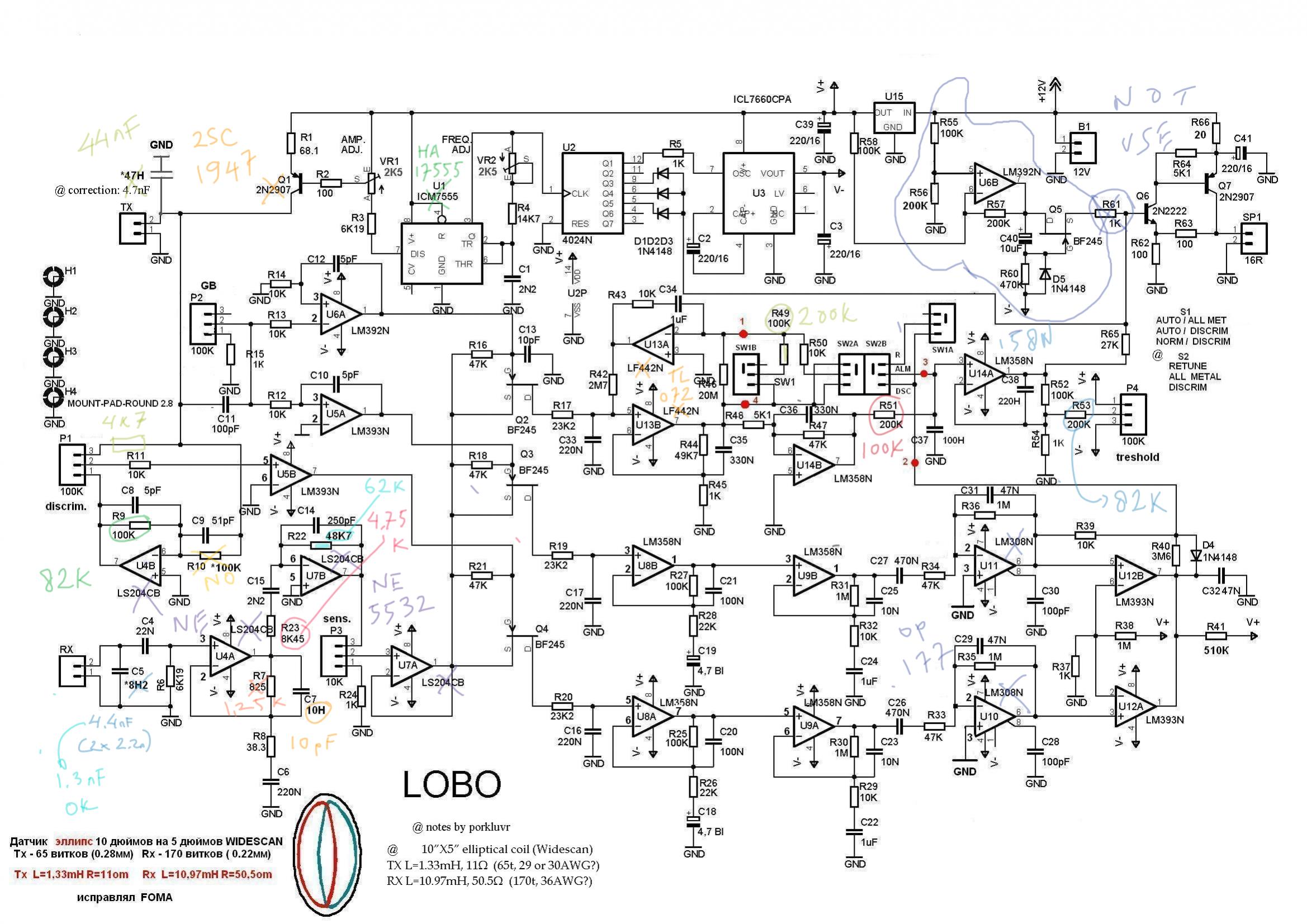 I'm sorry master KT, I was a bit misleading, I'm not good explaining stuff, last post I don't have time. gold bug runs tx at 19khz so it is the same ballpark with lobo, while on that thread Mr.Dom is experiment arround tx as Ivconic did. So, perhaps someone could renew the schematic with better analysis for easier understanding. the right freq to set, geotech version. I mean, lobo rx approach similar to cobra, but building lobo is too hard, It's only for expert. I've build cobra and new version lobo from vlaser, it works, but not for long, so we need better improved on this original version, on this forum only tchoci, foma, legaucho, success to arranged lobo. One more thing, we need better reliable option outside ICL7660 psu doubling.