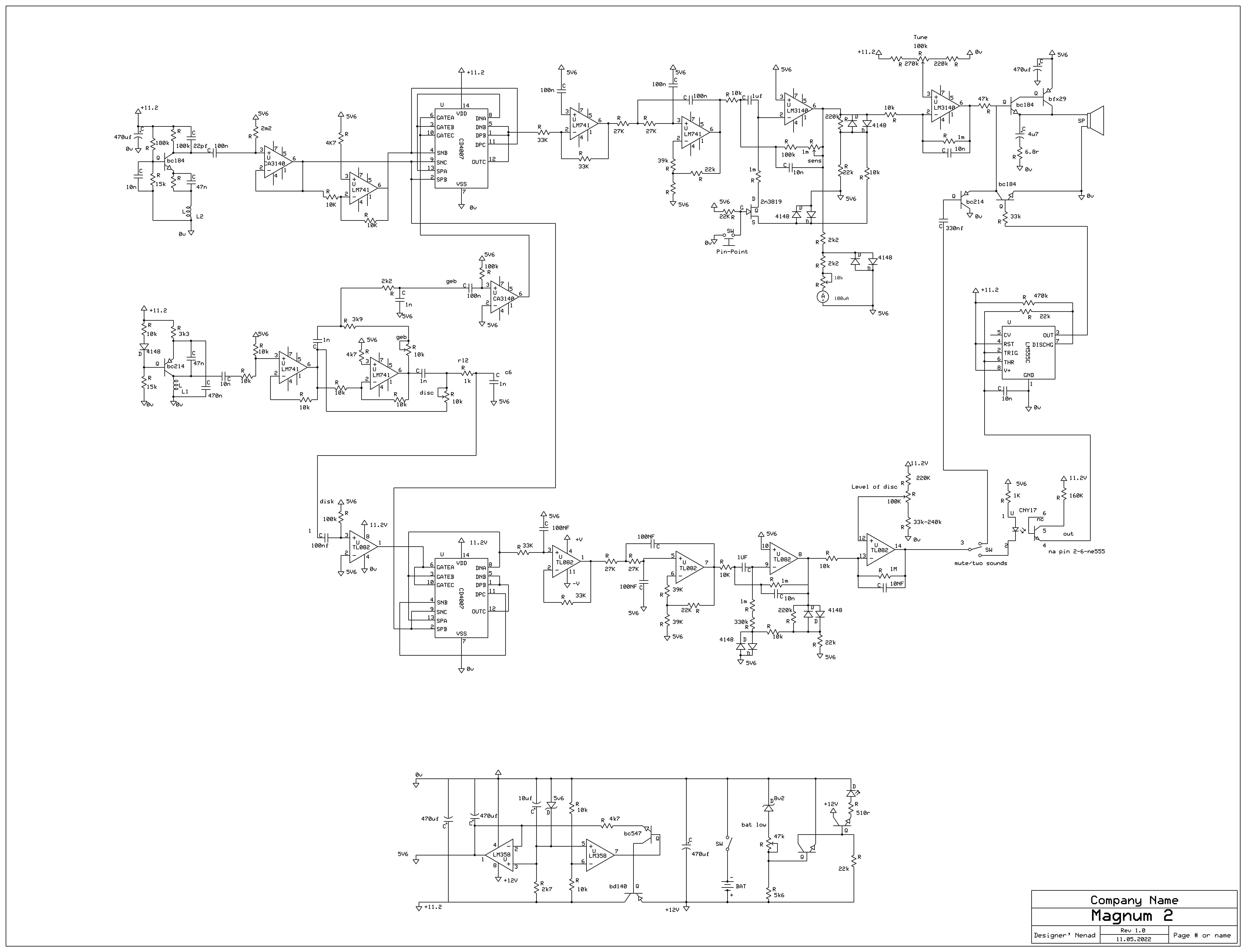 This detector is a modified Magnum does not require complicated switches to switch from the geb potentiometer to the disc it has excellent discrimination and two tone sound selection or selecting mute sound switches for the iron..A pcb is never drawn on a single pcb if someone wants to draw a scheme it is correct.