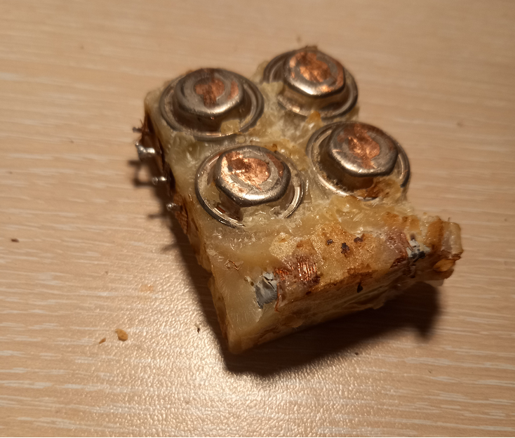 I've managed to scrape some of the epoxy potted section. There are 4 power transistors and 2 toroidal transformers.