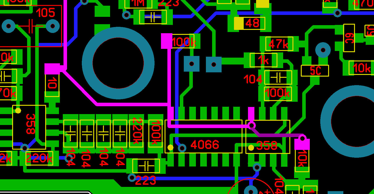 OK , I see but without labels its hard to associate those r's and c's with the 4066.Originally posted by ivconic View PostAnd again; yes it has on schematic too: