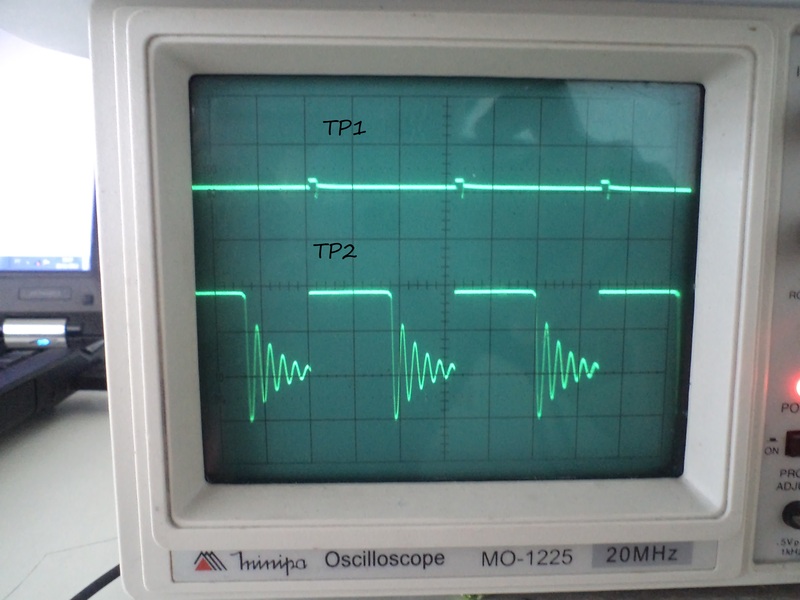 TP2 is at the output of the preamp, and the signal is seriously underdamped. If you have a 380R damping resistor fitted, then the problem is probably your coil. What is its inductance?