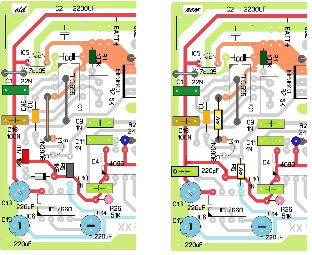 Remove link from the +Batt to the 2N2906 and replace this link for a 100 ohm resistor OK DONE