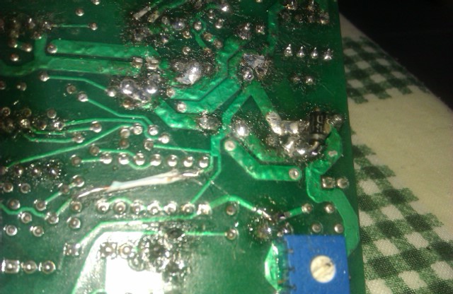 Drill a small hole in the ground track to place a cap from 220pF that has the other leg in the anode from the removed diode OK DONE