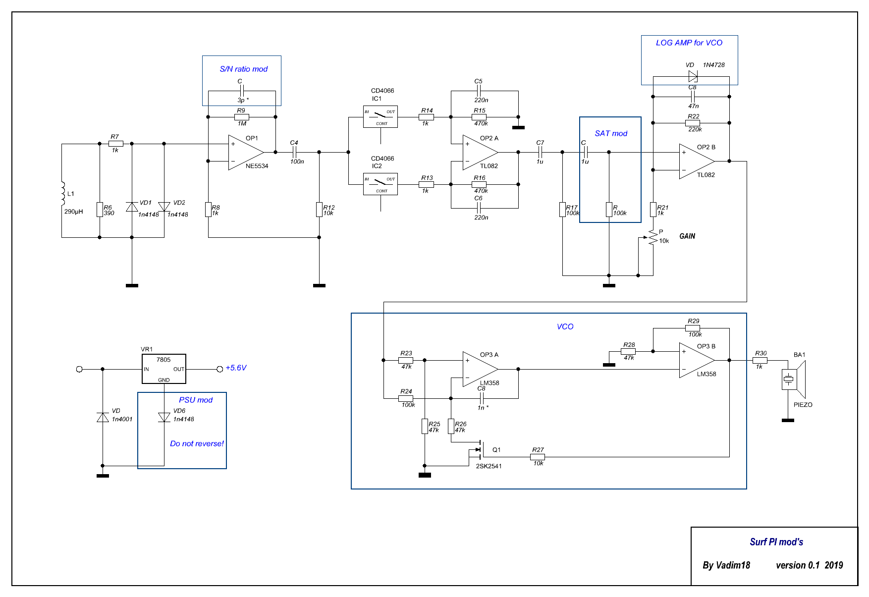 3. Added, a conventional VCO on lm358, to get more audible information about target.