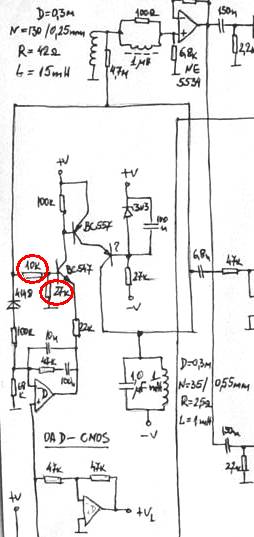 I've tried there a 33K but without relevant effects. I think problem is that some components are still unknown... as for the last PNP transistor that's maybe something a bit more special than a BC557 I think. The fact it was SMT say they used something particular... maybe available just as SMT or maybe not... but they want/used SMT any case... so we can expect something exotic will make it work on smaller coils but not or not well with traditional gen. purpose PNPs.