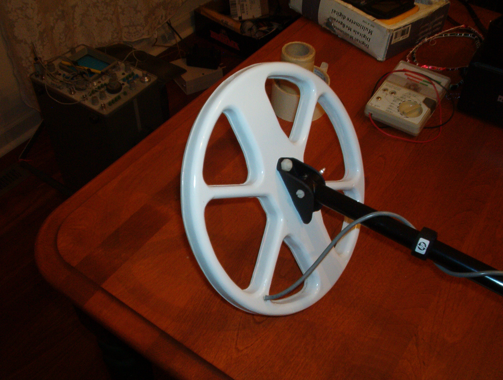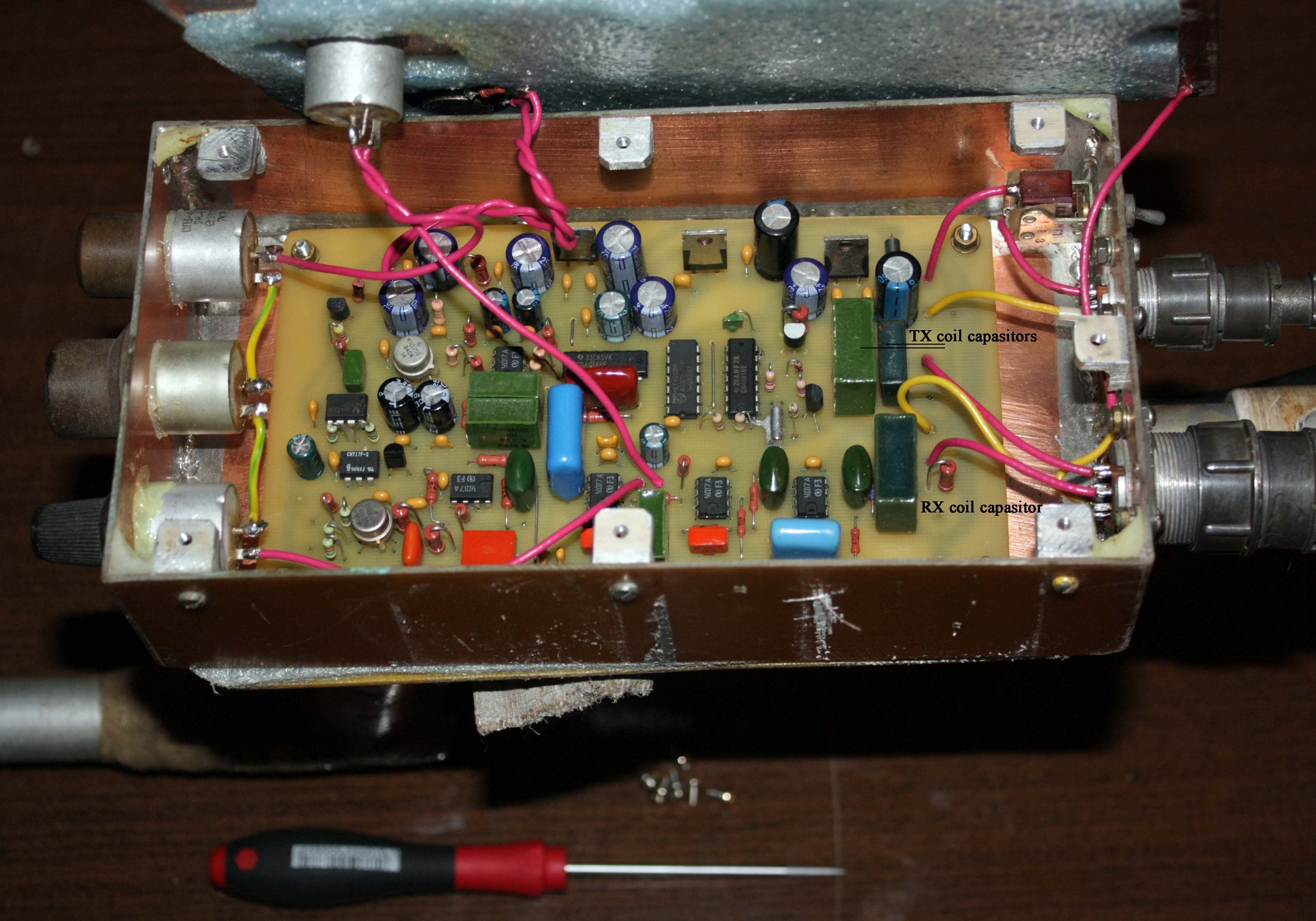 I use omega or 4B-coil. The detector does not see grass. During tuning the "fase" I reject ground soil effects. It has fixed discrimination. I use two search heads. The first tuned on all metals and the second one tuned with discrimination and does not see ferros metals. TX coil has diameter 39 sm and consist of 71 wings of 0,4mm wire (~ 6,8mH), RX coil has 140 wings of 0,23mm wire (~11,5mH). The diamiter of RX coil is about 20sm. TX and RX coils have shields maden from aluminium foil. Both have gaps in shields. I advise to experiment with correlation of diameters of TX and RX coils.Attached Files