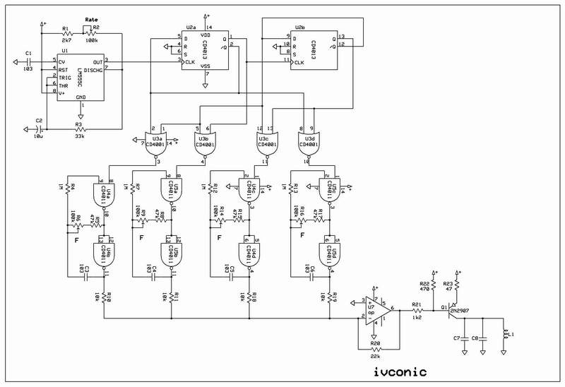 4 frequencies in a sequence switched by rate defined with 555.