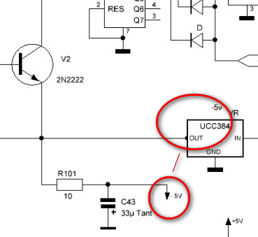 A 78L08 regulator is used for +8V and a Ucc384 regulator for -5V.