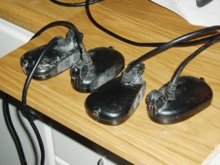 The new array is much shorter than the old one but the expected sidelobe suppression is -8 dB. The old suppression was -4 dB. (Remember, -13 dB is the theoretical limit for unshaded arrarays). Various tests showed that the instrument (Humminbird Matrix 37) displays echos down to about -8 to -10 dB so there was hope for only minor influence from sidelobes. Indeed, this proved to be the case.