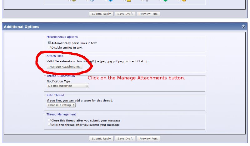 Don't worry about putting the image on PhotoBucket. Simply scroll down the page and select Manage Attachments. You can then add an image to your post on Geotech. Please take note of the maximum file sizes.