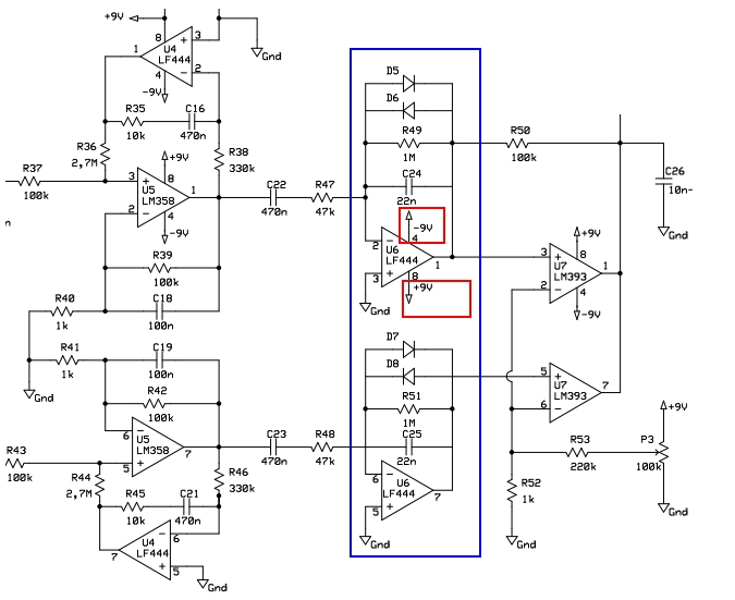 The signal going into the first mode band filter (low-pass) 5-20Hz changes in short <-x [V] ... 0 ... x + [V]