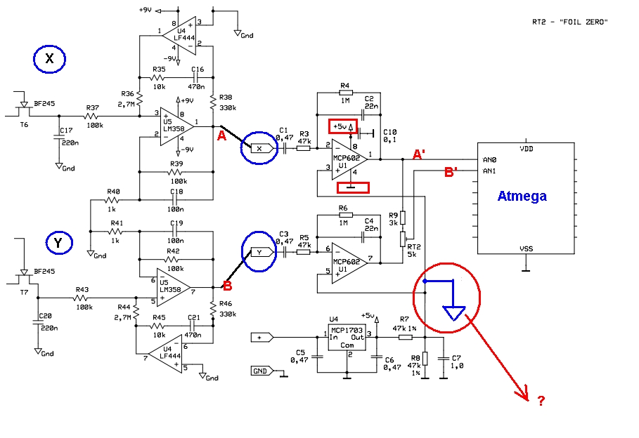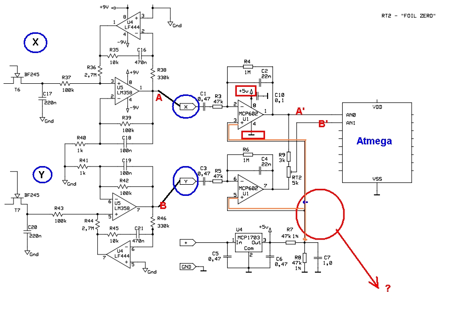 Going into the second block filtration (X ', Y') + gain (in module VDI) signal inverting amplifier configuration varies in the range < 0 .. X+ [V] >.
