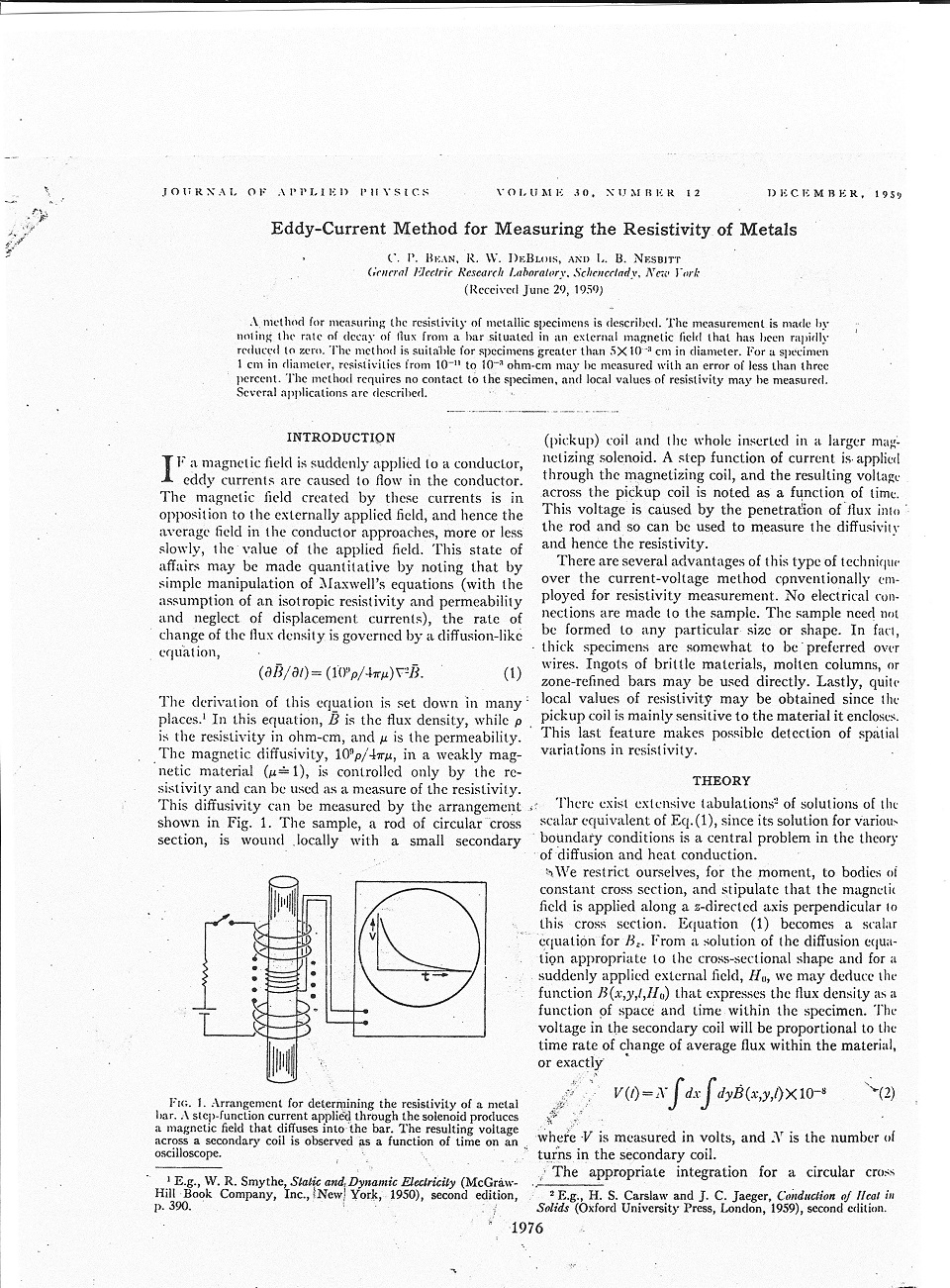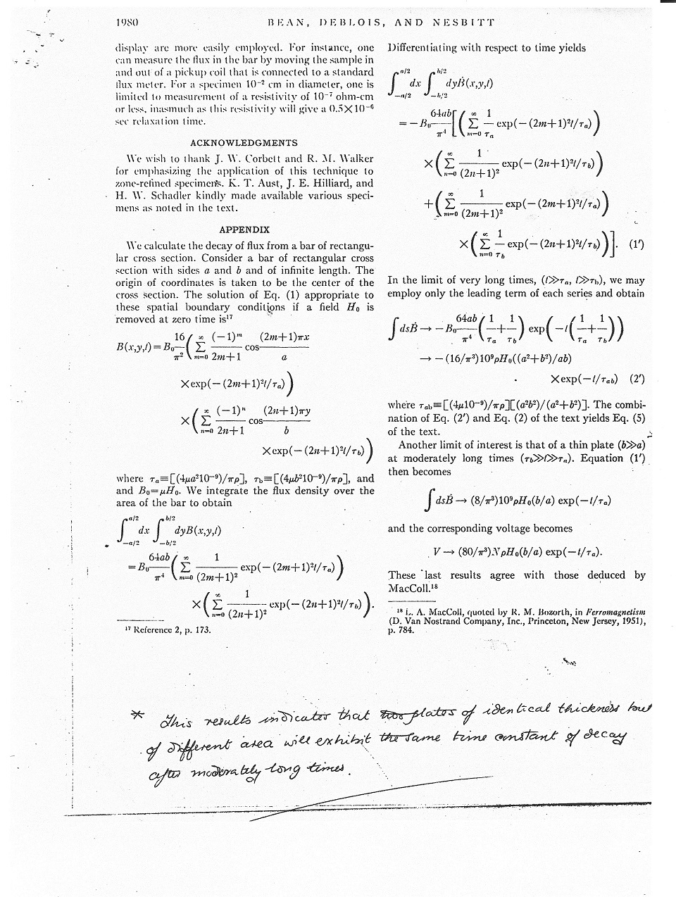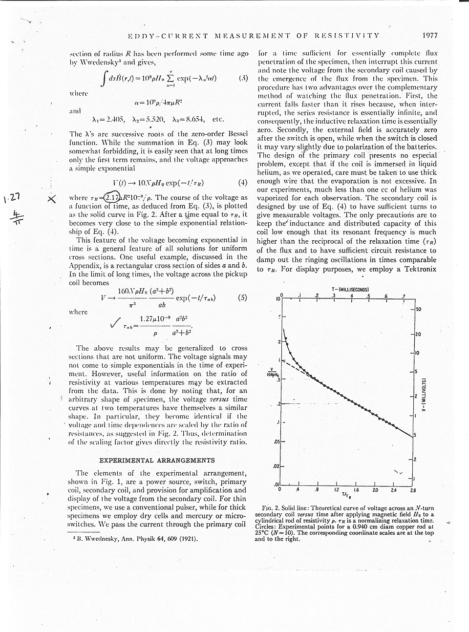 Looking at there chart (figure2) for .94cm copper rod. About 600usec/decade(TC=261usec). I calculate 265usec using the data from my wire experiments. The same as theirs since the 600usec was a best guess.