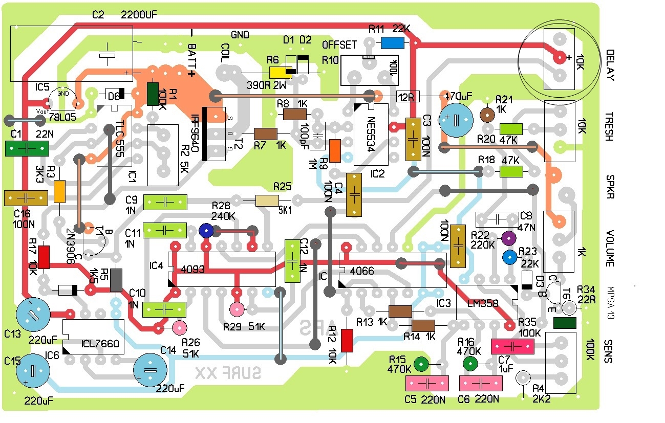 primary dealay is P3 on the surf pi pcb?this P3 pot i turned all the way clockwise and is good for gold metal.for salt water i turned left?