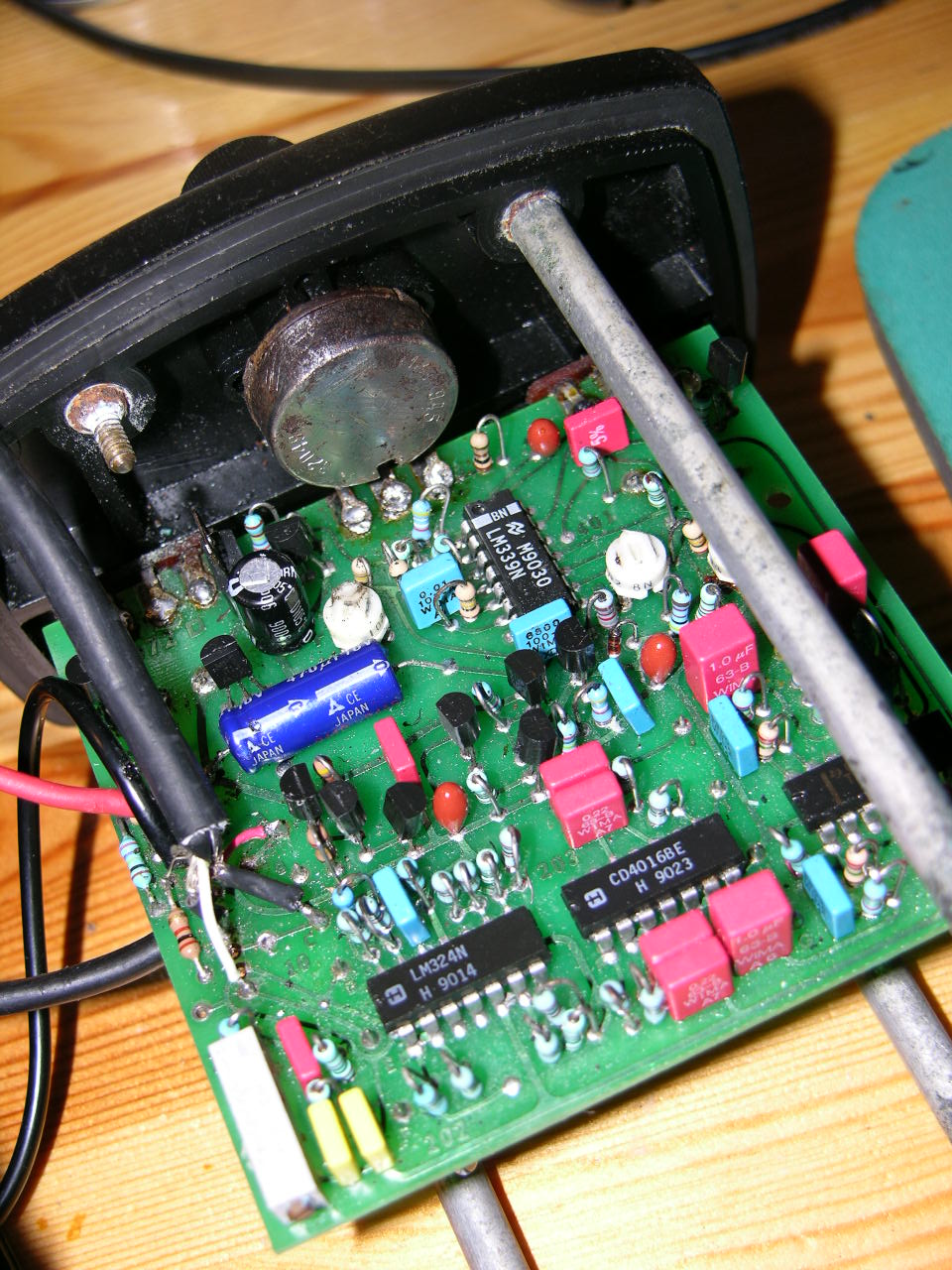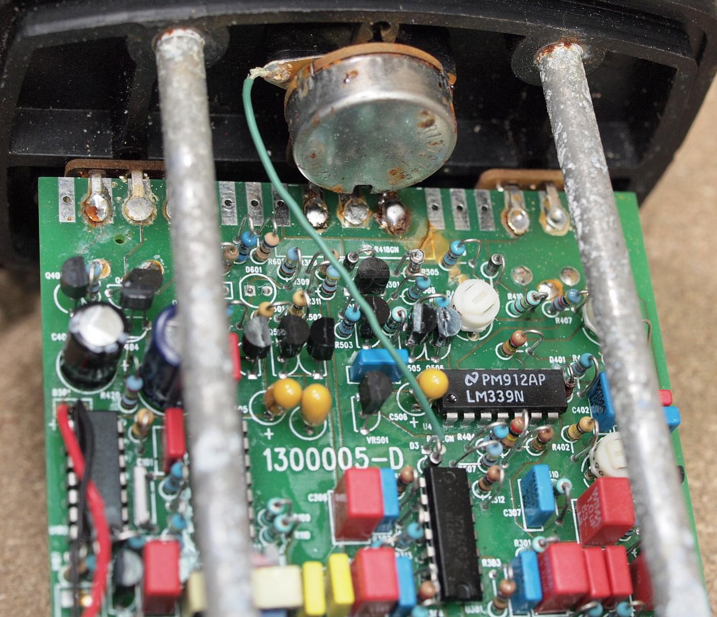 But i can't see where they was soldered before. Anyone have an idea ? And so on why there is no sound ? Just before i opened, the led flashing when a metal was under the coil, but with no sound ...