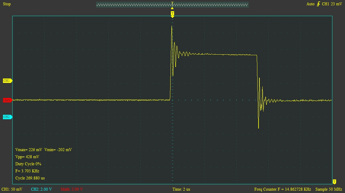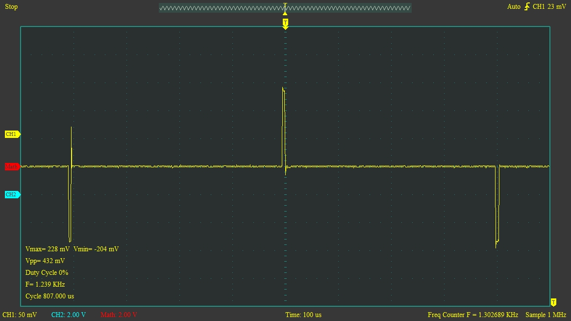 Thanks for posting up those images. Very nice scope you must have. It is intriguing to see such alternating short duration pulses. When viewing the pulse train from afar, to my uneducated eyes, they almost look like flyback periods. Reminds me of something PiTec posted once. For years MikeBG spoke of an old "gradiometer-like" coil and principle. Seems to follow similar pattern, measuring the difference between two receive signals.