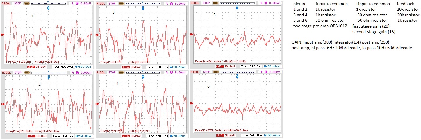 Tested a two stage pre amp to see if I could see resistor noise. My test setup is crude, looks like it's showing resistor noise. The OPA 1612 could easily be better than my test. Looks like connecting the coil to the + input thru a switch would be good if I could get the switch working.Attached Files