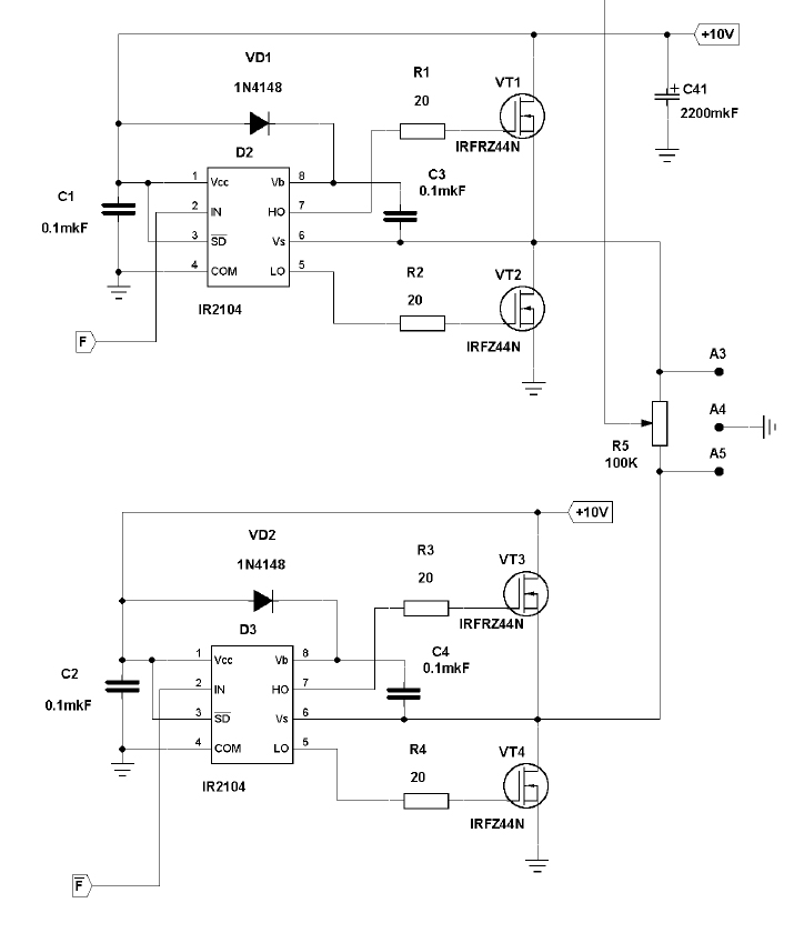 • half brigde + half bridge you get a bridge