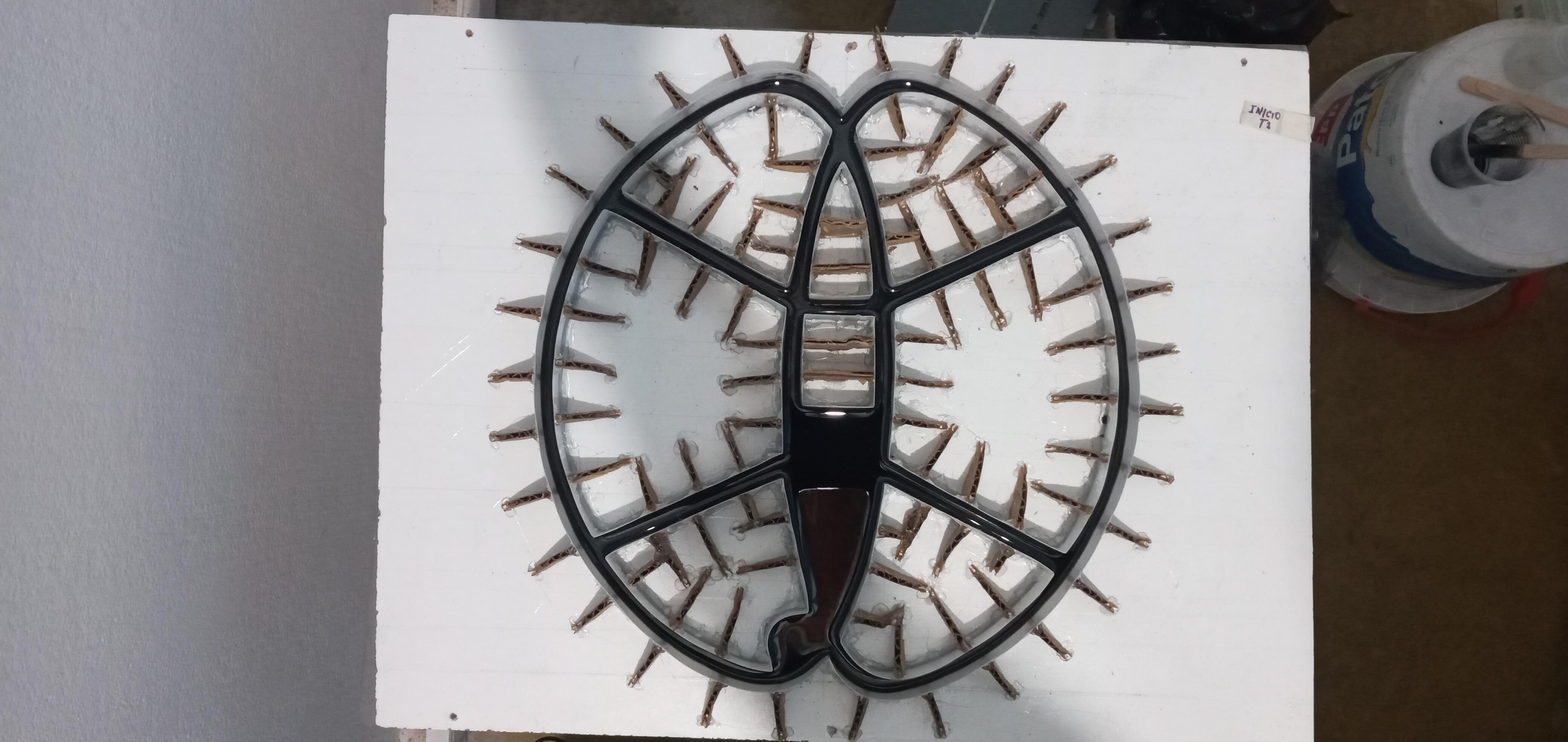 I made the entire contour of the motor rewind mica sensor and sealed it with hot silicone. I made the ears out of PVC. I used prepared resin and only had to add a few drops of catalyst to make it harden.