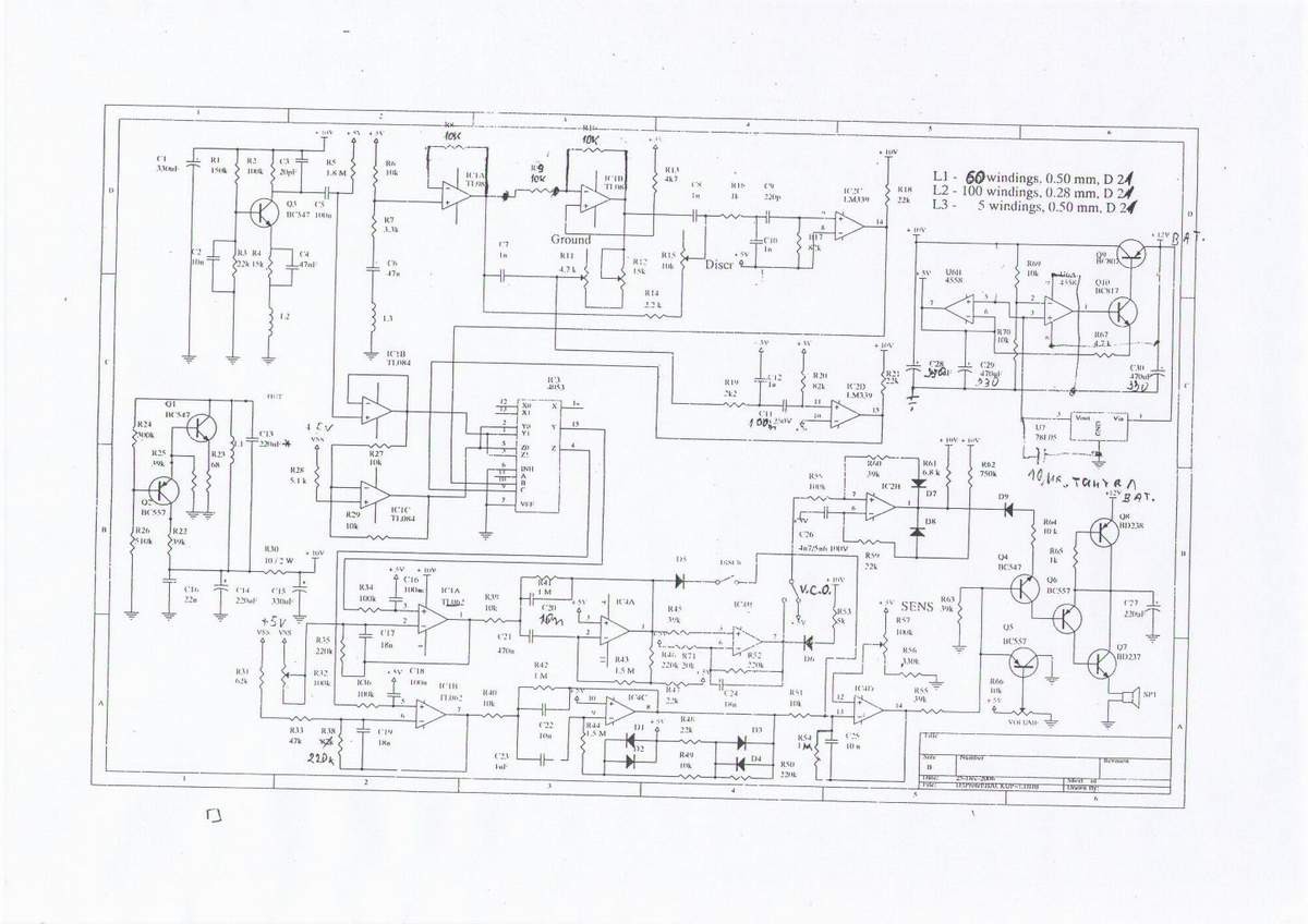 • This is not a project, this is a copy-paste. at least try to synthesize another VCO circuit - without an optocoupler. change something - this primitive scheme has too much ground noise. 18 khz is too high a frequency for the requirements of our region - you can go down to 13-14 khz without any problem. I have seen garage versions which in air tests are top of the tops, but on the ground they are a complete travesty . the probe is made in montana - are you from that region?