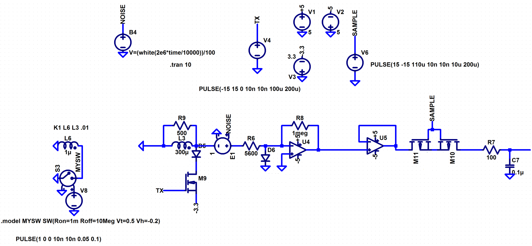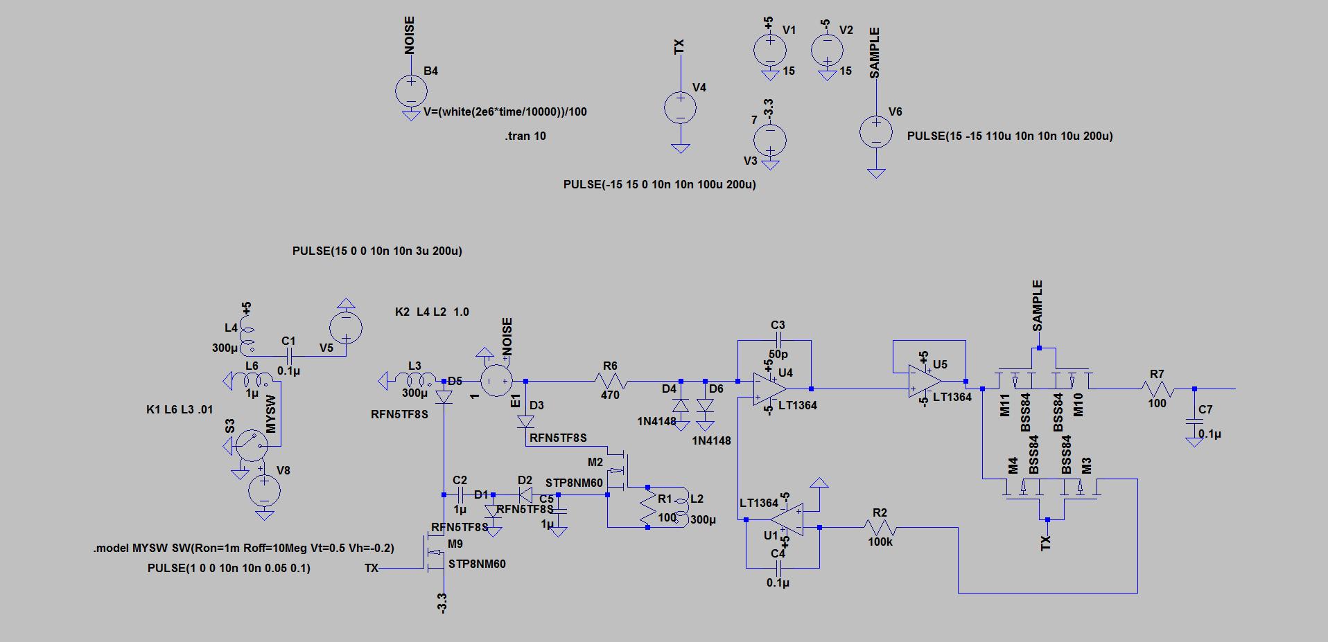 Tried to build the BASIC.png circuit(reply #125) in LT spice. I'm a novice with spice and trying to learn. First the coil volts didn't look right until I picked a new nmos for M9(STP8NM60) and a new diode for D5(MUR460). When does it make sense to use generic over actual components? Using generic op amps in my noise circuits above speed the analysis. Could they have a negative effect on the analysis?Originally posted by moodz View Post...here is the noise problem ... resistor noise / noise from coil / noise from EMI / mag fields etc.