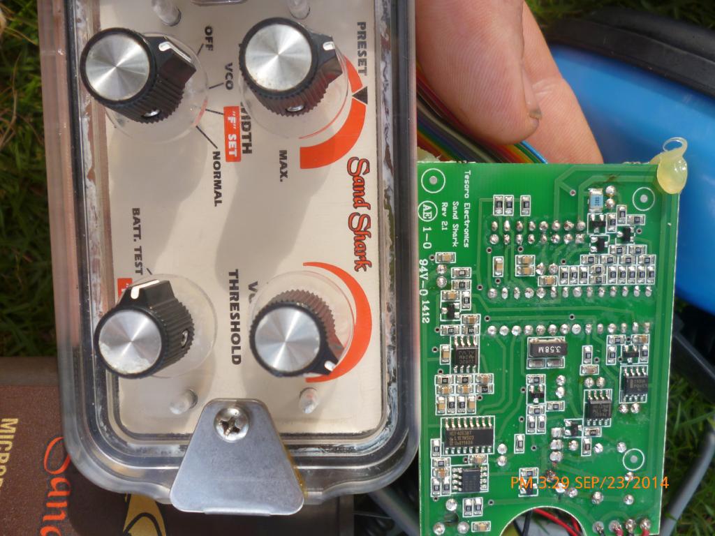 What brings me here is that I have broken Sand Shark… bought used from ebay (so I don't have warranty), died after few days… just started smoking from it. I saw that one resistor became darker due to the influence of heat. I decided to take it to my friend, who is professional in repairing electronic things. He noticed that not only the resistor is black but also one transistor which is placed near. So I contacted Tesoro and they gave me the info about burned parts… (The R2= 20 OHM 1/4 watt and Q2= 2N2907). Friend changed the parts but problem remained, he changed some other parts but with no success… I found partial schematics of SS PCB on this forum, so I will once again ask my him to try fix it.