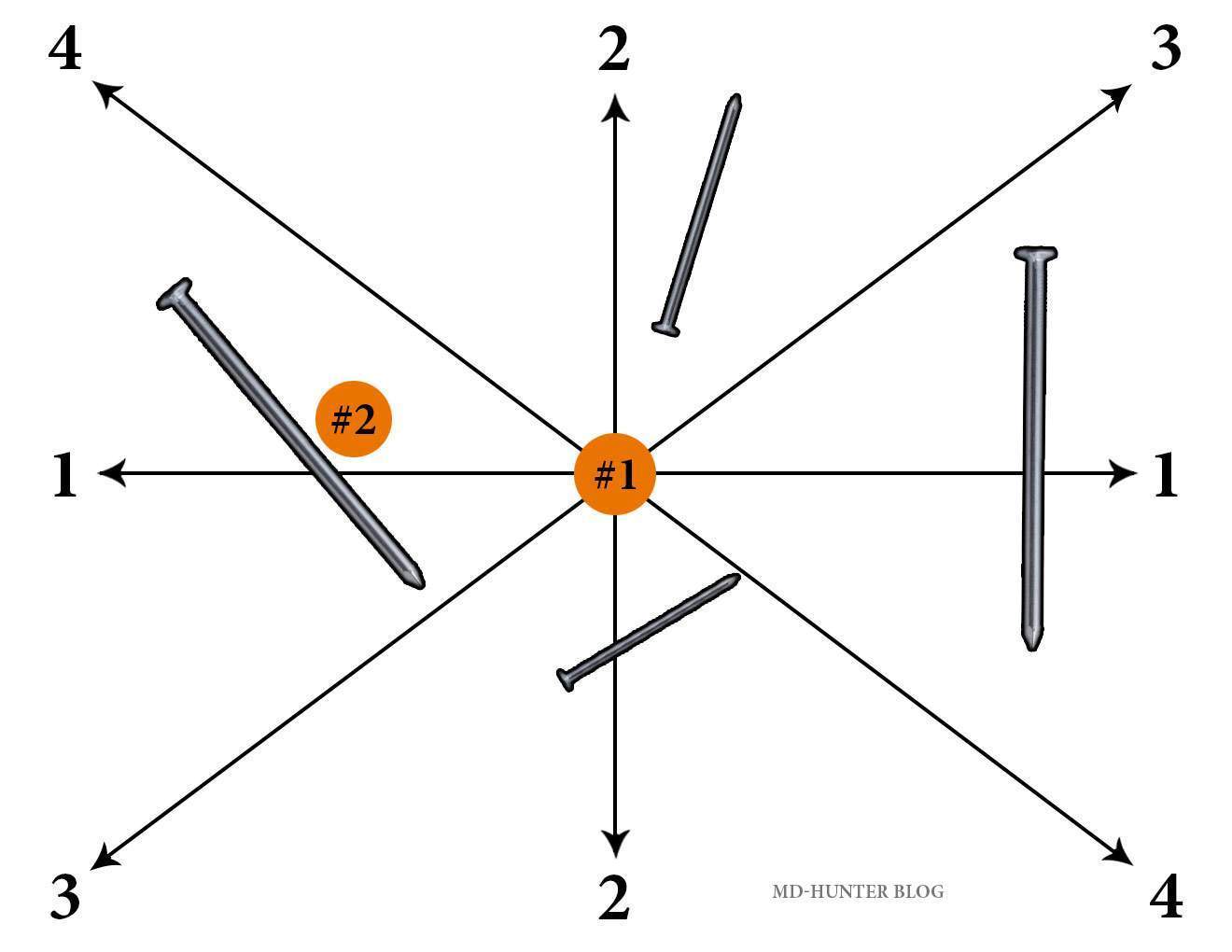 four (4) sweep directions marked on the Nail Board. Two sweeps for each of four directions makes