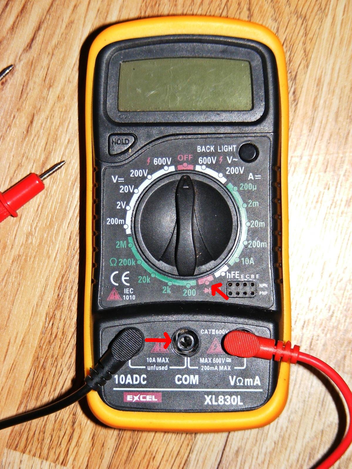The selector switch is set as shown, the black probe connected to COM as shown.