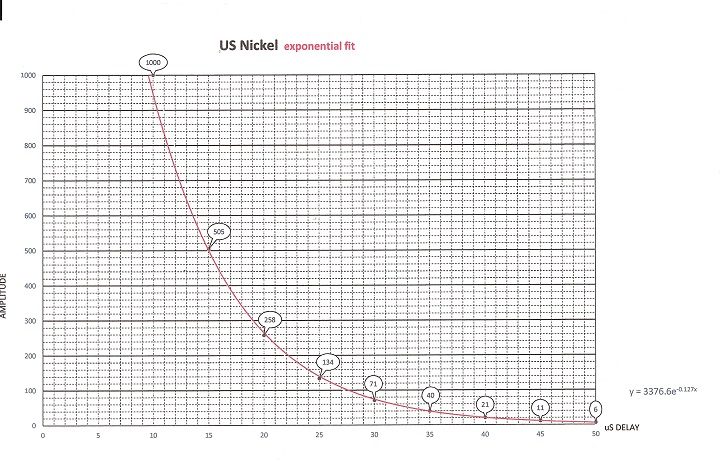 I will plot a clad quarter, but I have a MK2 version of my equipment that would be better to use. The minimum delay on this is 20uS, but it will measure out to 1mS, which is good for larger and more highly conductive targets. Also, I can set the delay time spacings to give more resolution at the start of the decay as you suggest.