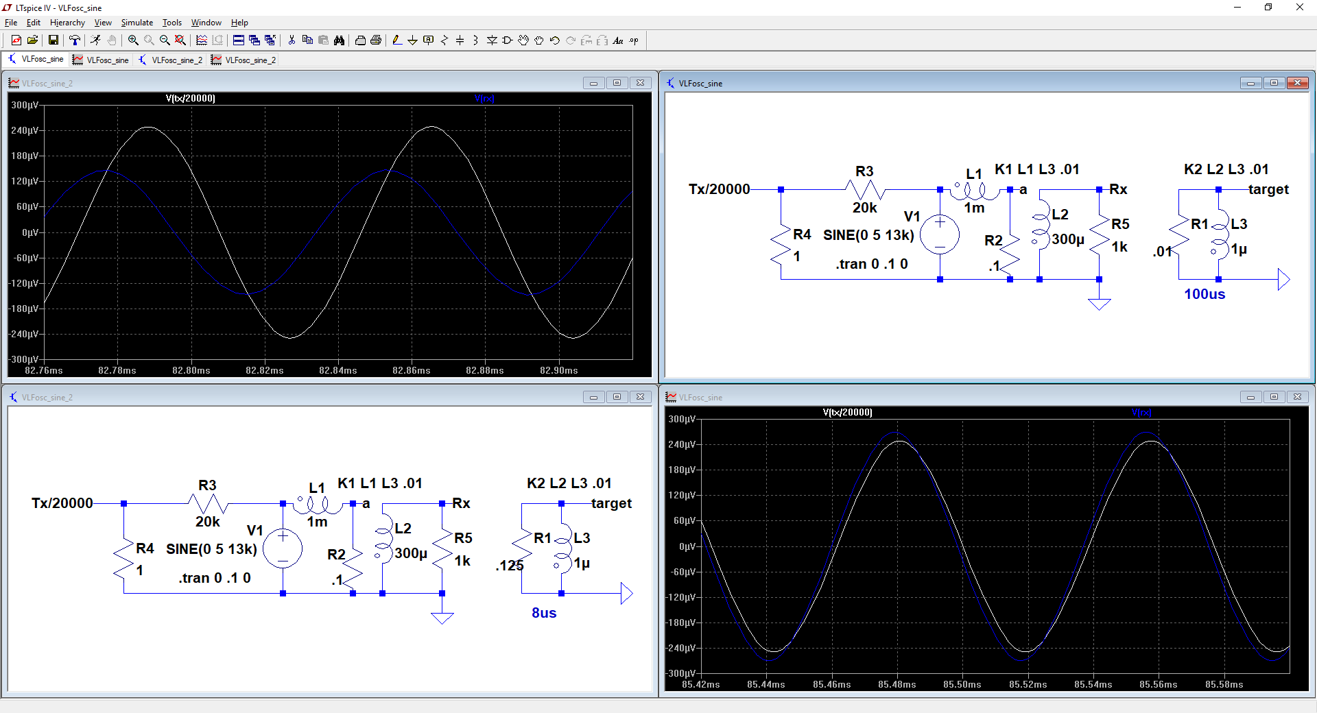 Wire time constant varied from 8us to 100us. Tried a simulation in spice. I'm guessing time constant is calculated from phase shift. Does the simulation make sense? What is the formula to convert phase shift to time constant?Originally posted by Skippy View PostAnd here's two graphs for the '20mm' diameter copper rings. One shows all of them, clearly showing what I assume is skin-effect ( 13kHz VLF used ), and one showing the smaller gauge wires in more detail, to show the decent straight-line.