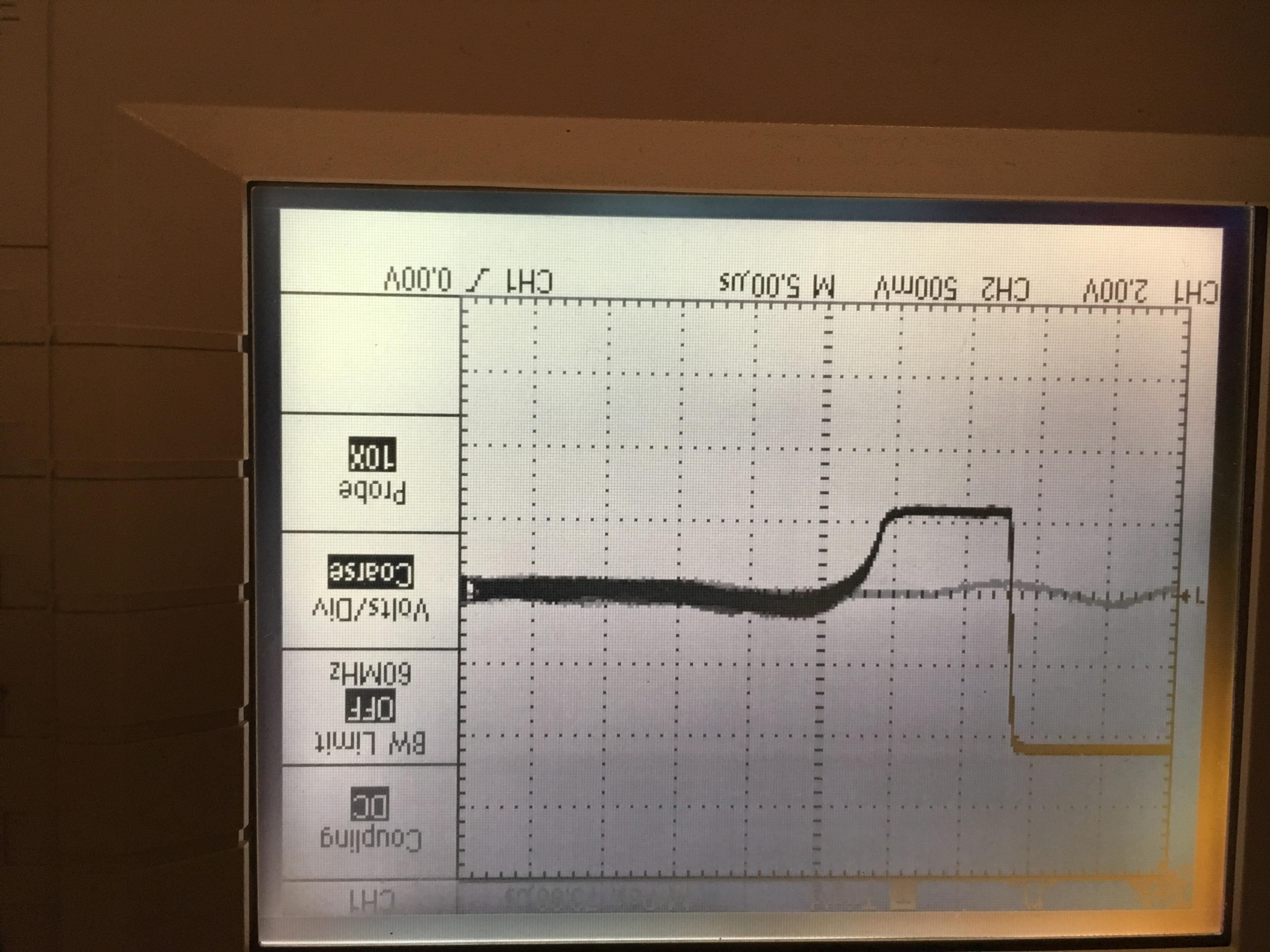"Your post prompted me to get out a development model of the Goldquest SS and run it up on a scope. This will run at a minimum delay of 8uS from the TXoff initiation. TX pulse is 30uS wide and 13K PPS. The coil is a tapped mono of 450uH total but with a tap at 150uH. The TX drives the tap and the RX connects to the whole coil. The TX Mosfet is a IRFD210 with 27R in series with the drain ON resistance, and with the R of the coil we have about 0.3A pulse current. The rise time is 8.8uS so the pulse is substantially flat top for over 20uS and at switch off there is no avalanche.