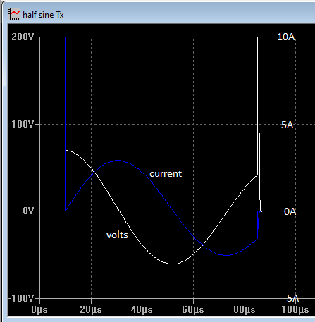 Good question. Looked at simulation again and saw I left Tx on to long. Thought Tx was the same as patent picture but it wasn't. Setting the times right solved the problem. Including a picture of what I had.Originally posted by Tinkerer View PostHalf sine current or half sine voltage?