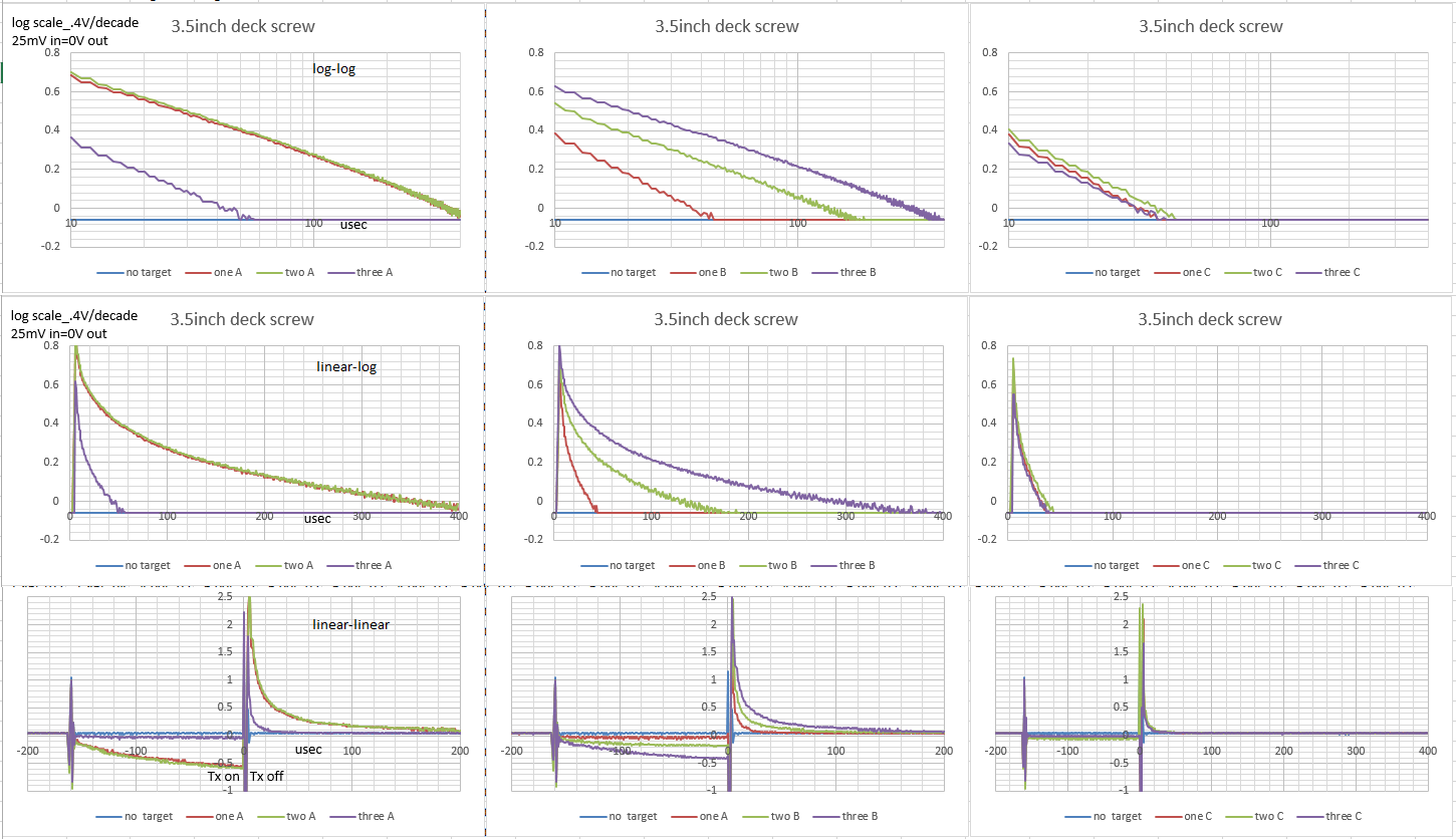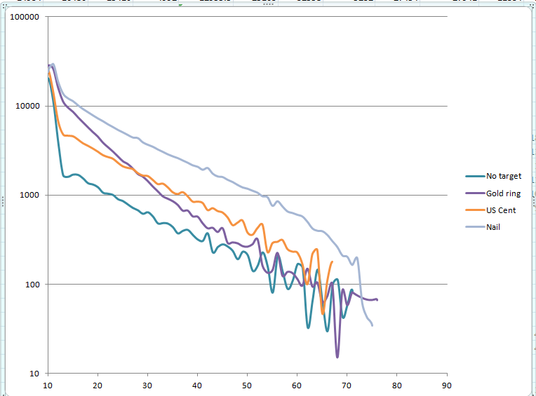 I ran this again. Captured and averaged 4 curves of no target and a nail sitting on the coil. put 1 curve of gold ring and US cent .